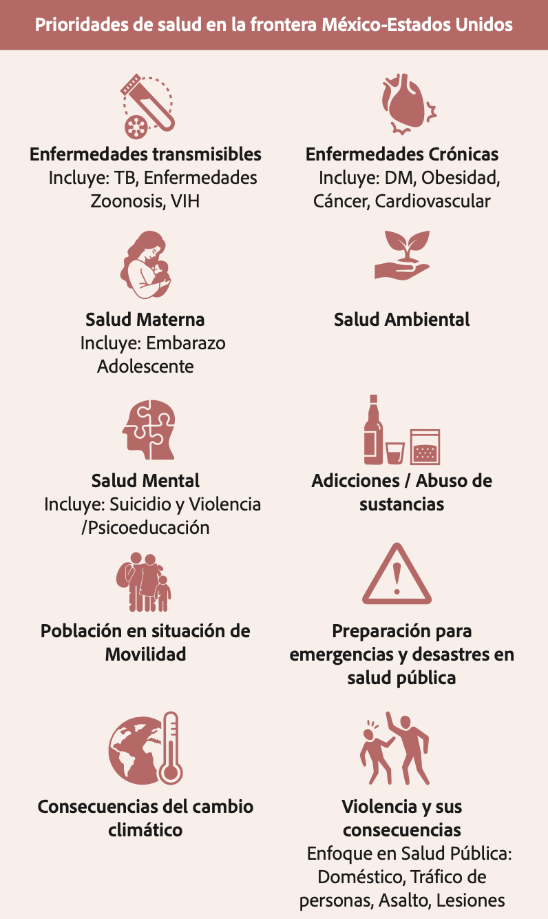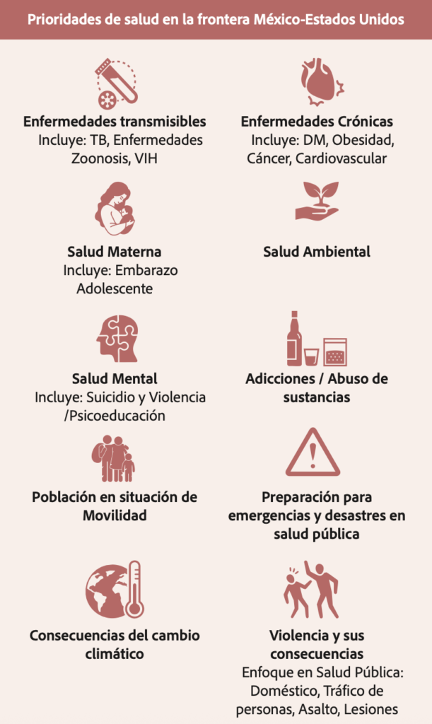 Frontera Saludable define las prioridades de salud en ambos lados de la frontera, para plantear objetivos y acciones binacionales en temas de interés mutuo.